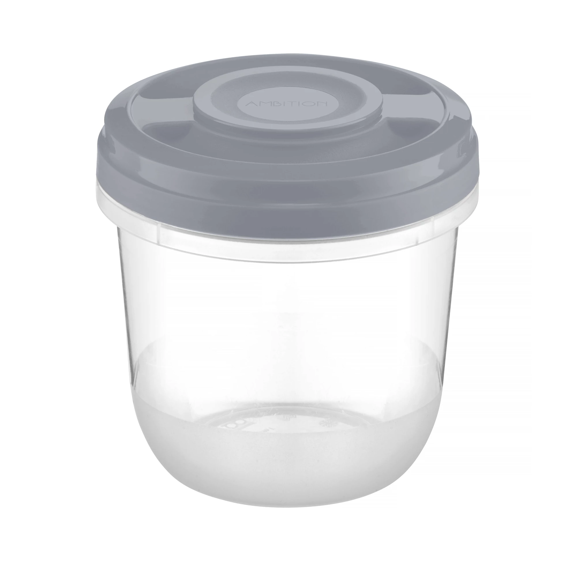 Ez az Ambition 0,75 literes élelmiszertároló praktikus és stílusos megoldás különféle élelmiszerek tárolására. Nagyobb űrtartalma tökéletessé teszi ebédek, saláták, zöldségek vagy gyümölcsök csomagolására. Tartós műanyagból készült, garantálja az élelmiszerbiztonságot és a mindennapi használattal szembeni ellenállást. Az átlátszó falak lehetővé teszik a tartalom könnyű ellenőrzését, a szorosan záródó szürke fedél pedig megvédi az élelmiszereket a frissesség elvesztésétől.
