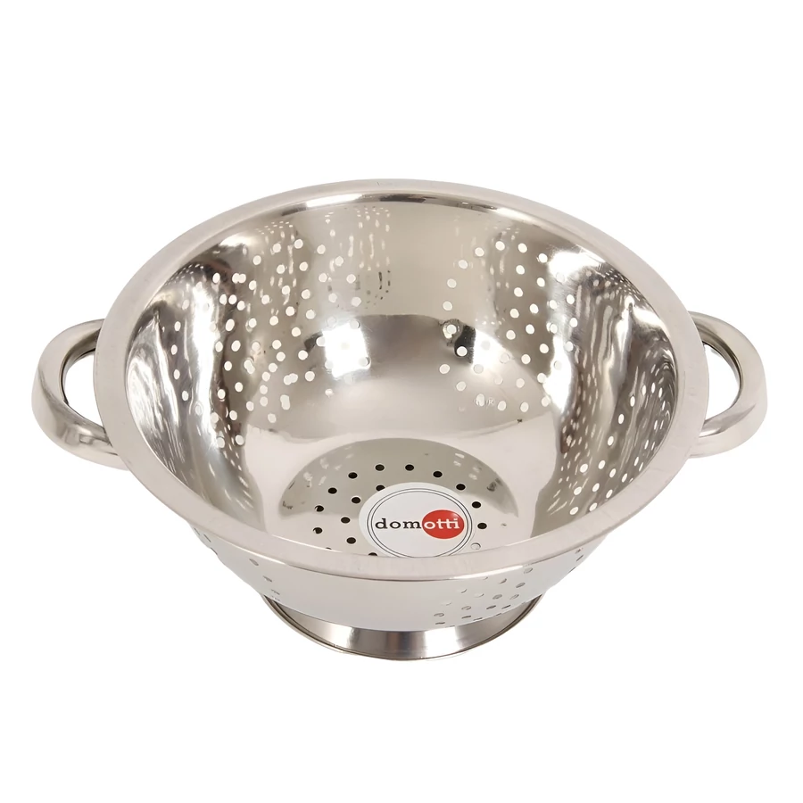 A Domotti szűrő rozsdamentes acélból készült. Minden konyhában nélkülözhetetlen darab, tökéletes zöldségek és gyümölcsök mosásához. A normál lyukaknak köszönhetően a tészta is átszűrhető. A szűrőnek van egy talpa, így leteheted anélkül, hogy aggódnod kellene a felborulása miatt.