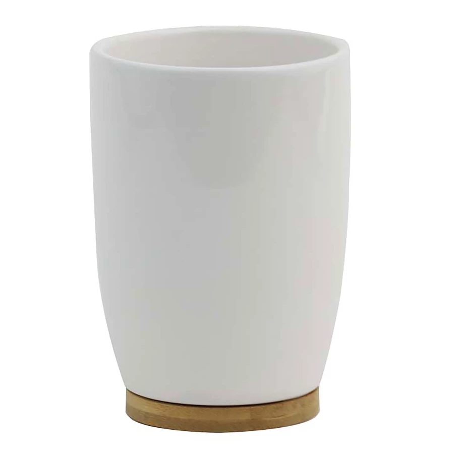A Jotta Lavado fogmosó pohár kiegészítő praktikus és stílusos kiegészítője lehet bármely fürdőszobának. Sima kerámiából készült, modern és esztétikus dizájnnal büszkélkedhet. A természetes bambusz alap melegséget kölcsönöz, és kontrasztot alkot a kerámia hűvös fehér színével. A bögre tökéletes fogkefék, kozmetikumok tárolására vagy apró tárgyak rendszerezőjeként. Kompakt méretének köszönhetően nem foglal sok helyet, minimalista kialakításának köszönhetően pedig modern, skandináv és klasszikus stílusú fürdőszobákba is alkalmas.