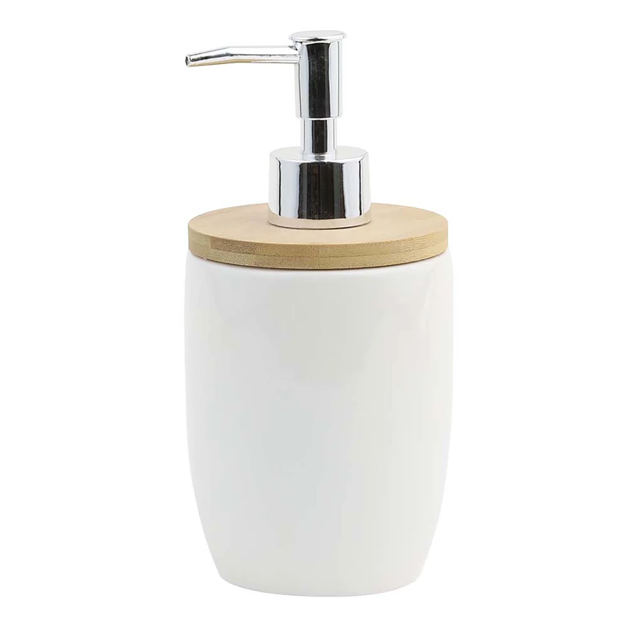 A Jotta Lavado szappanadagoló egy funkcionális és esztétikus fürdőszobai kiegészítő, amely zökkenőmentesen ötvözi a természetes elemeket a modern stílussal. Tartós dolomitból készült, sima kerámia felülettel, bambusz tetővel és króm színű műanyag pumpával. A teljes kialakítás egységes kompozíciót alkot, amely mind a minimalista, mind a hangulatosabb enteriőrökhöz illik. Az adagoló tökéletes folyékony szappanhoz, fertőtlenítőszerhez vagy testápolóhoz.
