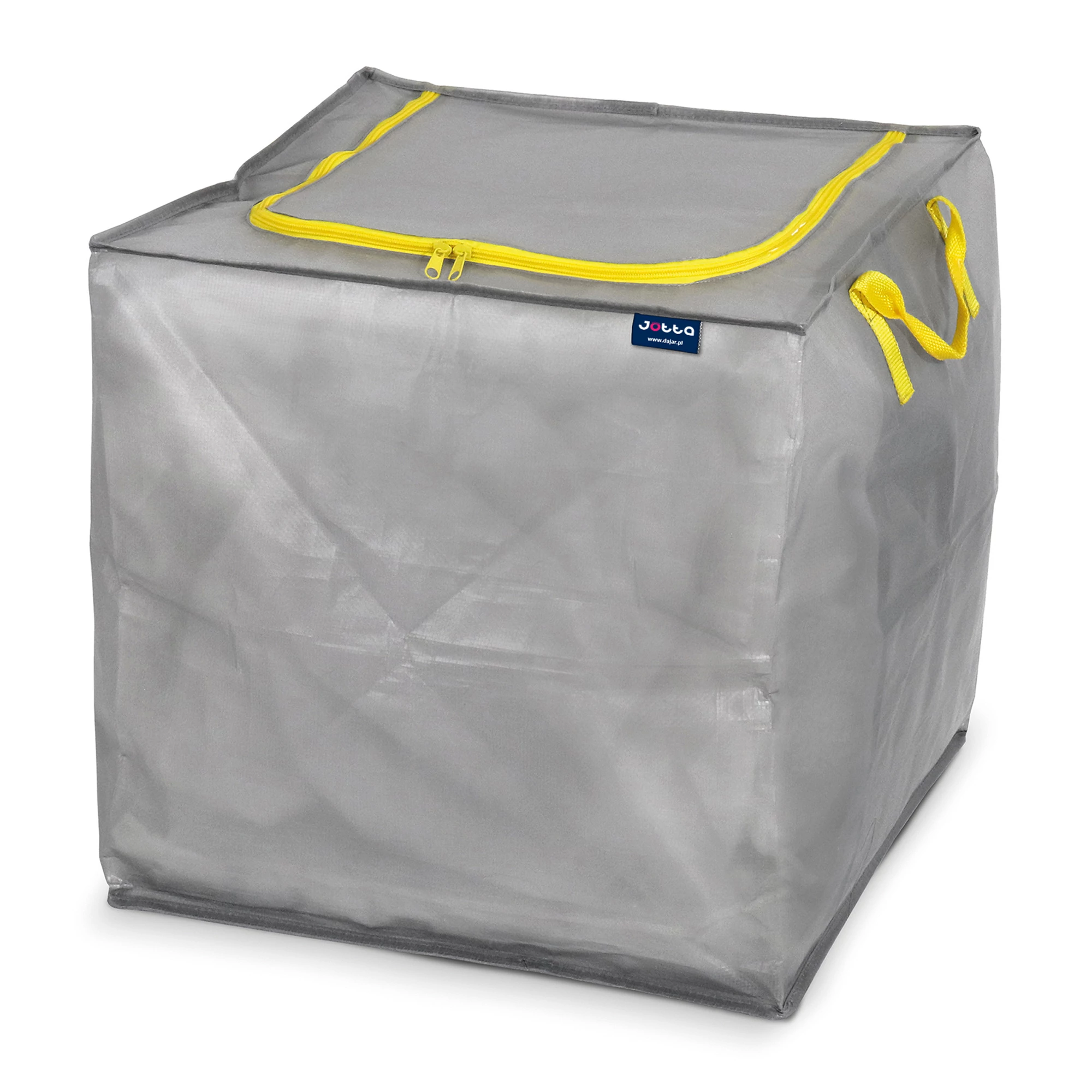 A Jotta Livin univerzális tárolója tökéletes megoldás otthonod rendszerezéséhez. Tartós polipropilénből készült, így hatékonyan védi a tárolt tárgyakat a portól és a nedvességtől. A masszív fogantyúk és a cipzár kényelmessé és biztonságossá teszi a tárgyak szállítását és tárolását. Tökéletes tároló szekrénybe, tárolóhelyiségbe, garázsba vagy pincébe.