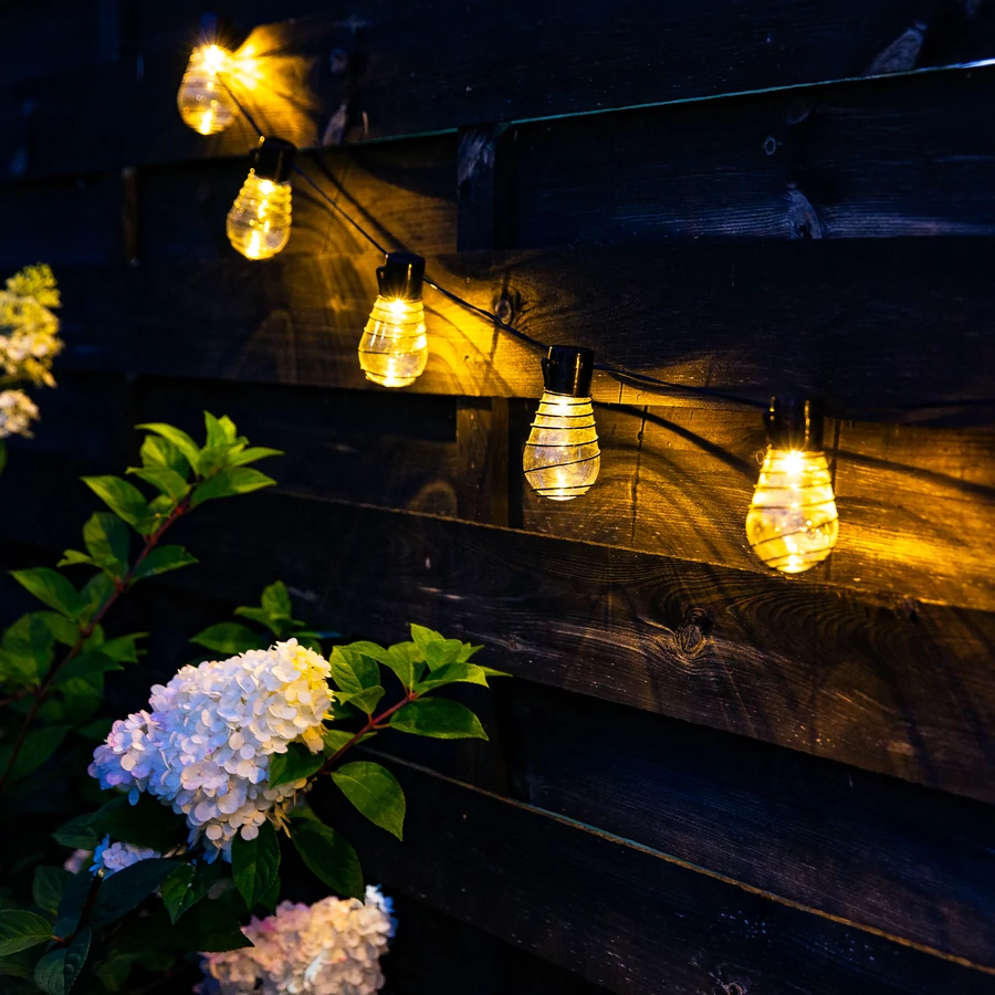 A napelemes füzér egyedi bájt kölcsönöz kertjének, teraszának vagy erkélyének. A stílusos, izzó alakú, spirál mintás lámpák meleg, kellemes fényt árasztanak, varázslatos hangulatot teremtve bármilyen térben. A napenergiának köszönhetően a füzér hálózati csatlakozás nélkül is működik, ami kényelmet és energiamegtakarítást biztosít. Az automatikus bekapcsolás alkonyatkor és kikapcsolás hajnalban lehetővé teszi, hogy további karbantartás nélkül élvezhesse a gyönyörű világítást. Tápellátás: 1 Ni-MH 1,2 V AA 300 mAh akkumulátor. Fényforrások: 10 x LED. Fényszín: meleg fehér. Világítási módok: folyamatos fény, villogó. Vízállósági szabvány: IP44.
